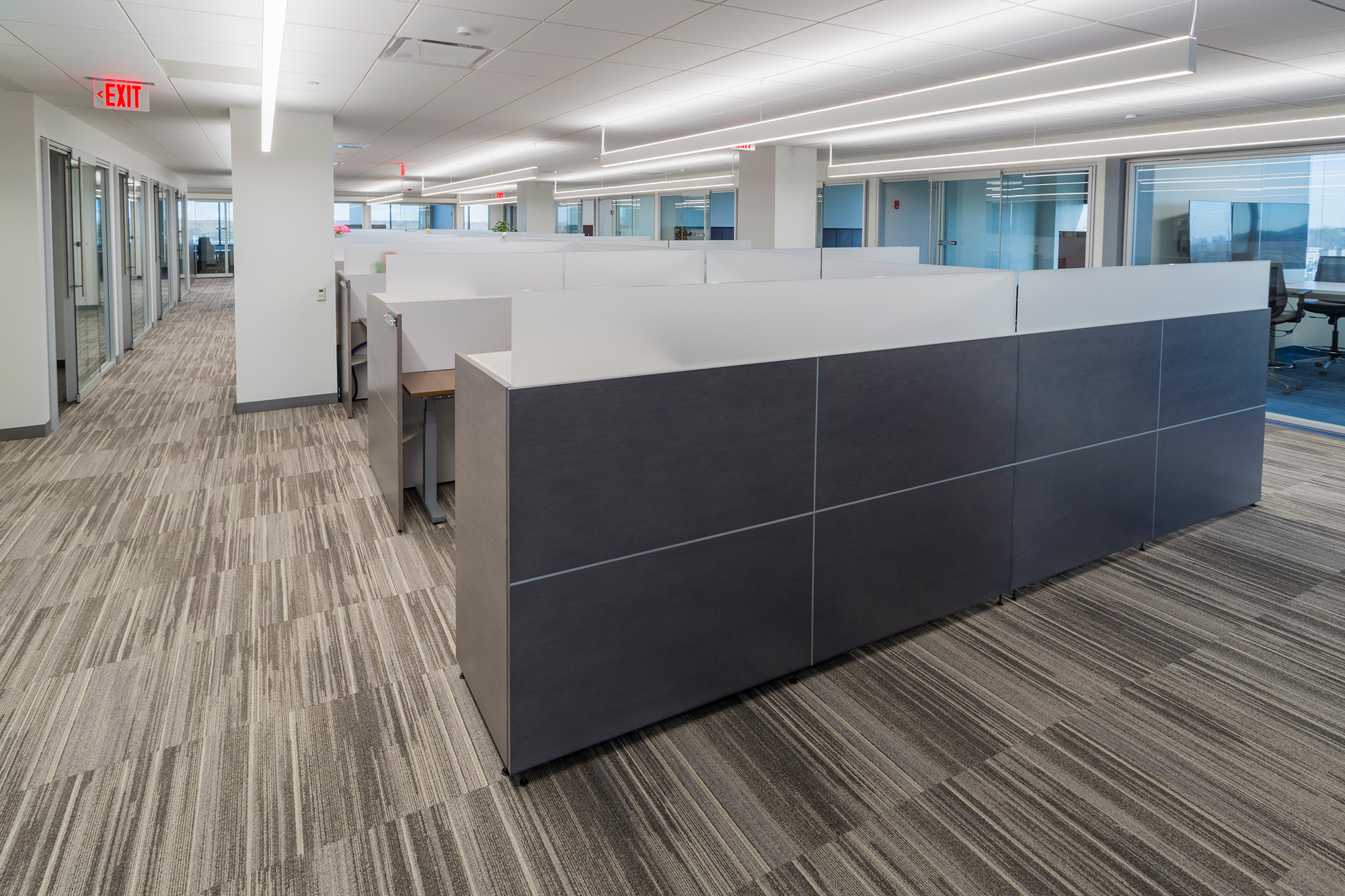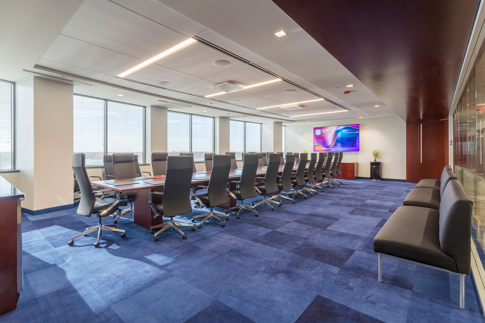 We recently completed a 25,000-square-foot executive office space featuring a modern, high‑end design. The project showcases extensive glass-front offices and conference rooms, custom architectural millwork, and premium finishes throughout. The result is a bright, open environment that balances elegance with functionality—offering leadership and staff a refined workplace tailored for collaboration, privacy, and productivity.